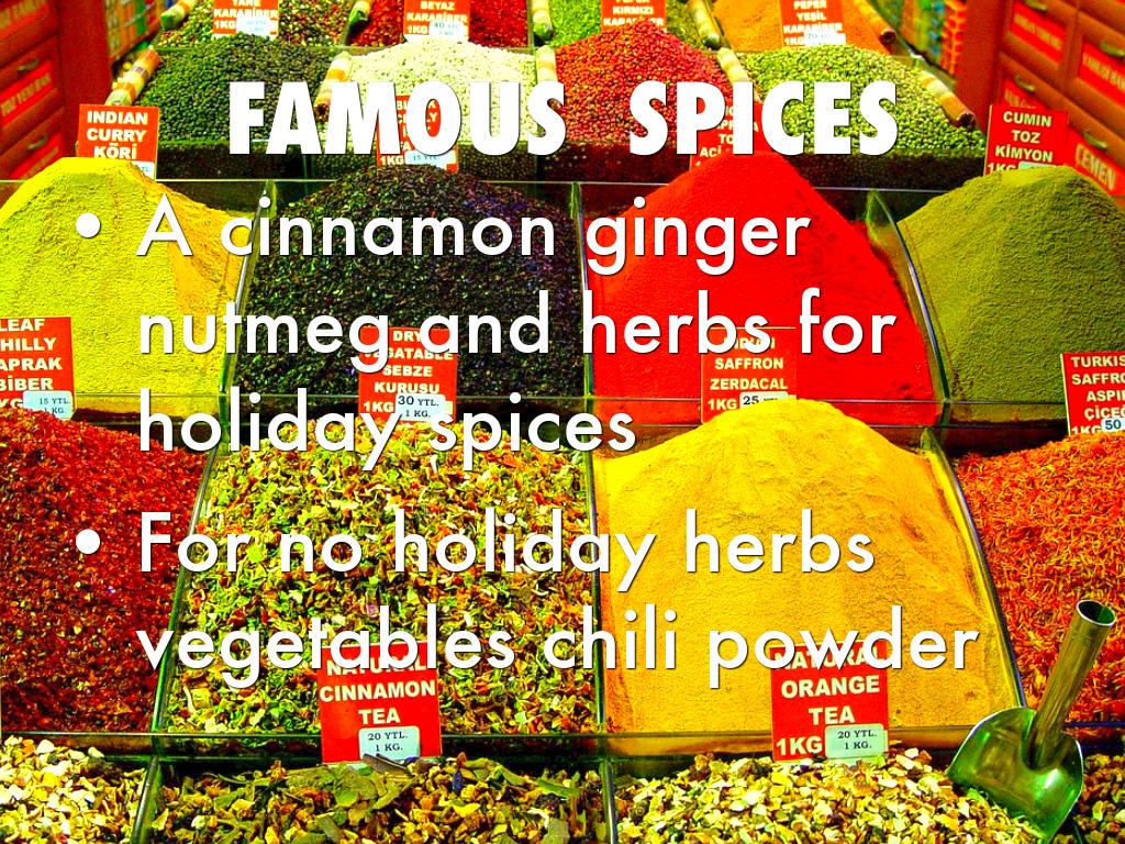 A cinnamon ginger nutmeg and herbs for holiday spices Christmas, New Years, All Saints Day.