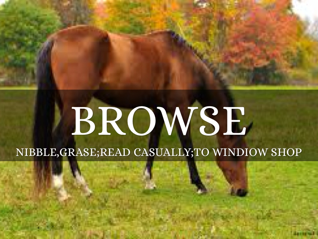 NIBBLE,GRASE;READ CASUALLY;TO WINDIOW SHOP