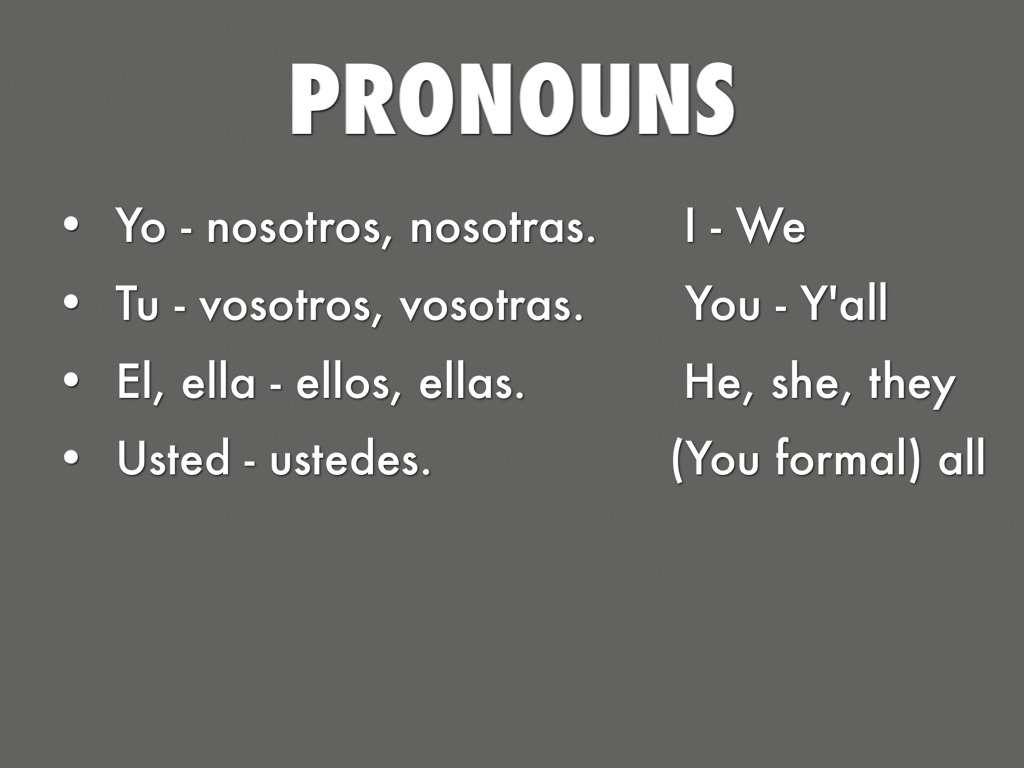 El, ella, usted, ellos, ellas, ustedes. (You formal) - you
