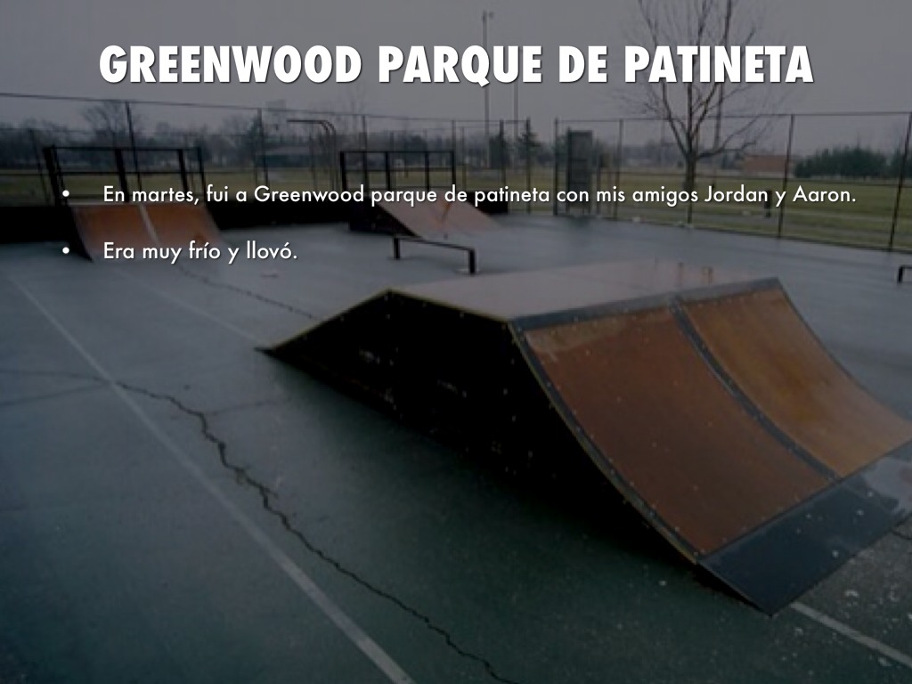 En martes, fui a Greenwood parque de patineta con mis amigos Jordan y Aaron.
