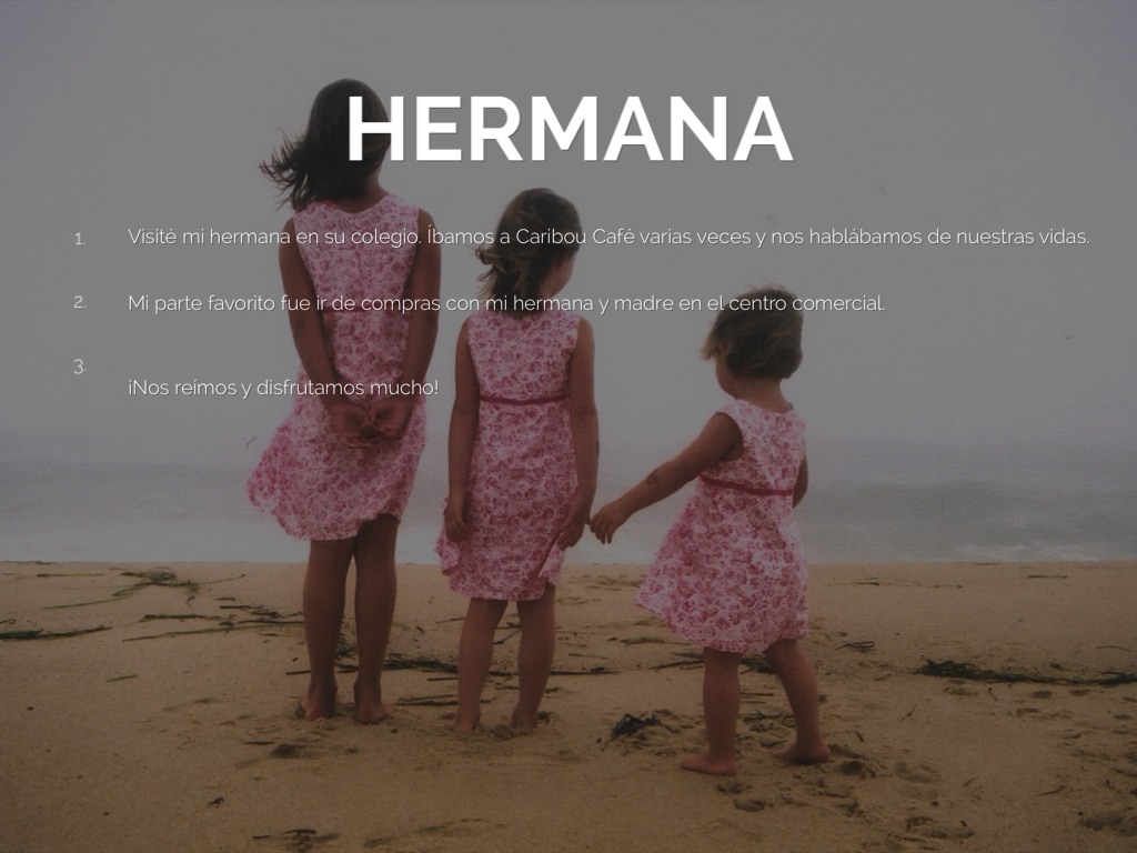 Visité mi hermana en su colegio. Íbamos a Caribou Café varias veces y nos hablábamos de nuestras vidas.