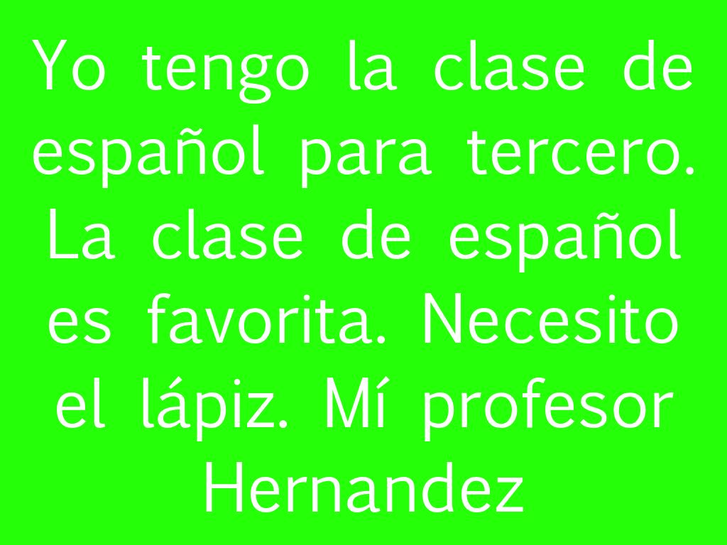 Yo tengo la clase de español para tercero. La clase de español es favorita. Necesito el lápiz. Mí profesor Hernandez