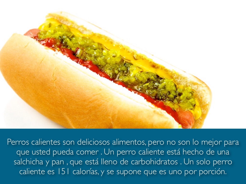 Perros calientes son deliciosos alimentos, pero no son lo mejor para que usted pueda comer . Un perro caliente está hecho de una salchicha y pan , que está lleno de carbohidratos . Un solo perro caliente es 151 calorías, y se supone que es uno por porción.