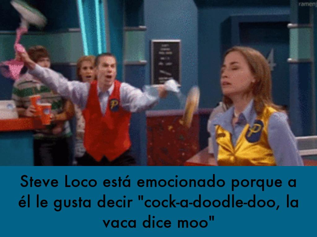 Steve Loco está emocionado porque a él le gusta decir "cock-a-doodle-doo, la vaca dice moo"
