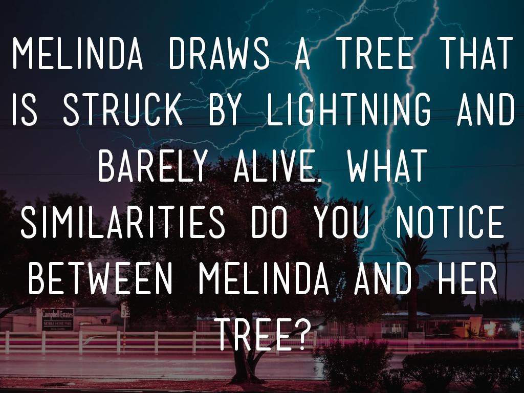 Melinda draws a tree that is struck by lightning and barely alive. What similarities do you notice between melinda and her tree?