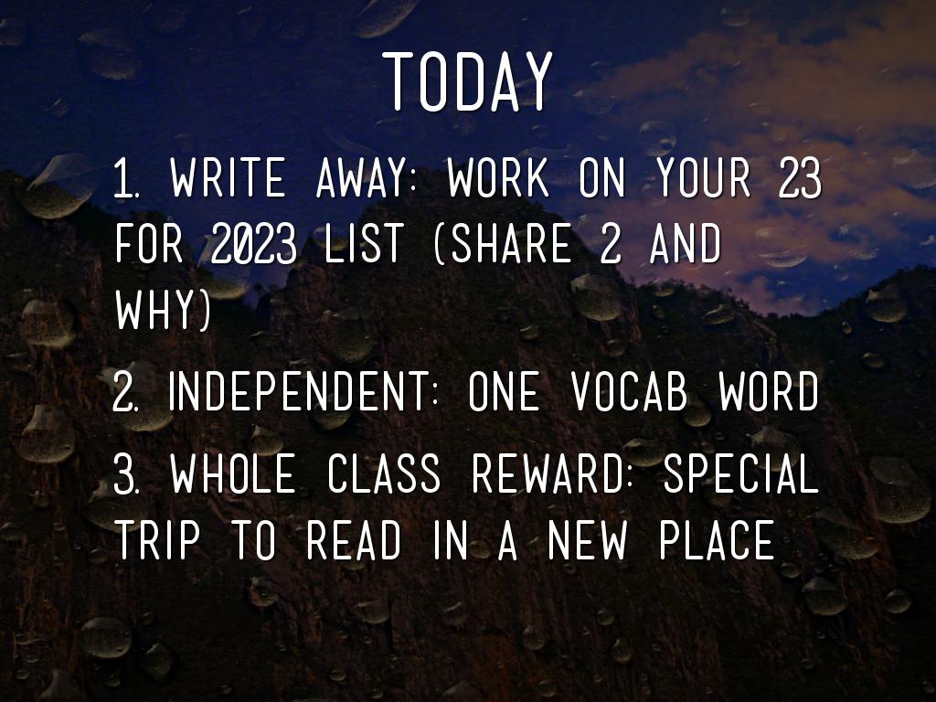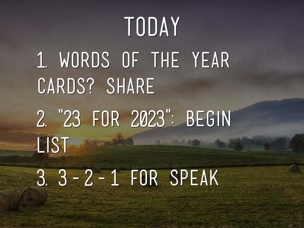 1. Write away: work on your 23 for 2023 list (share 2 and why)