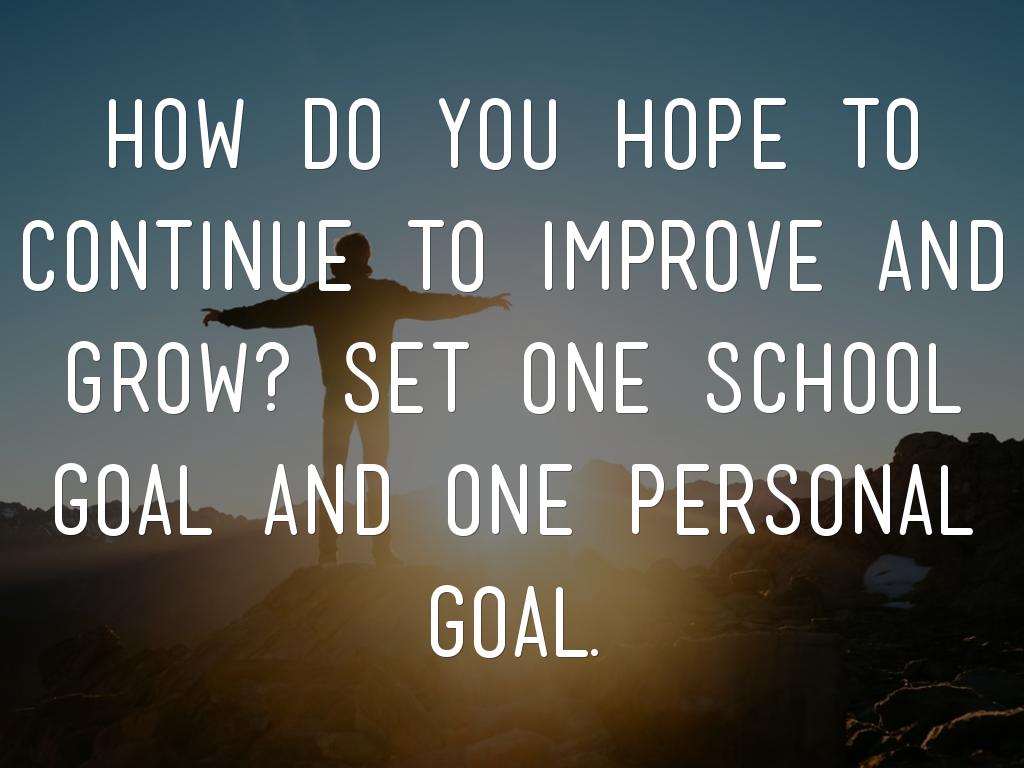 How do you hope to Continue to improve and Grow? Set one School goal and one personal goal.