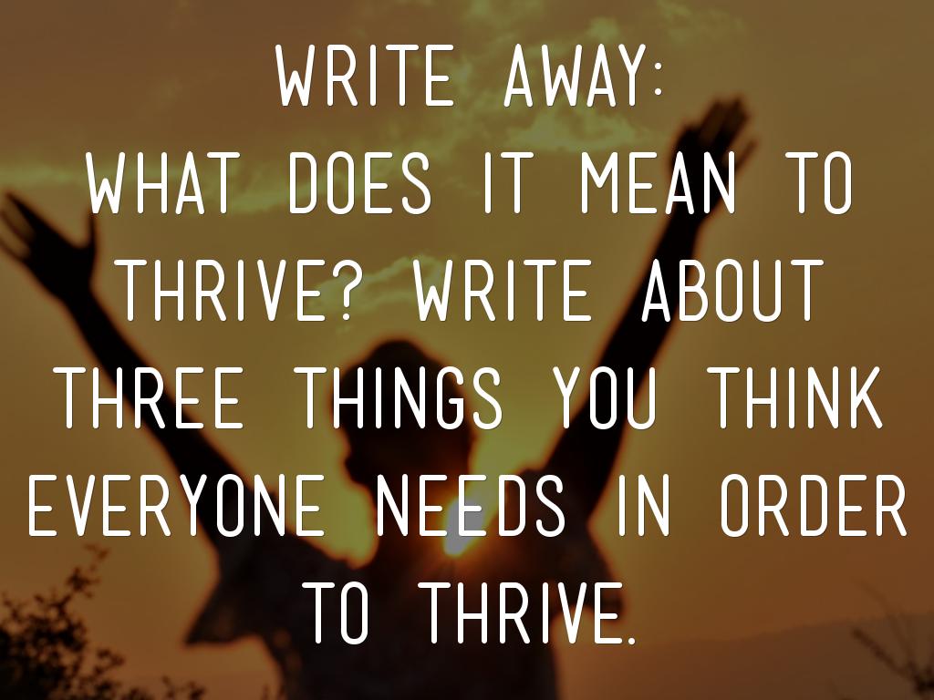 What does it mean to THRIVE? Write about three things you think everyone needs in order to thrive.
