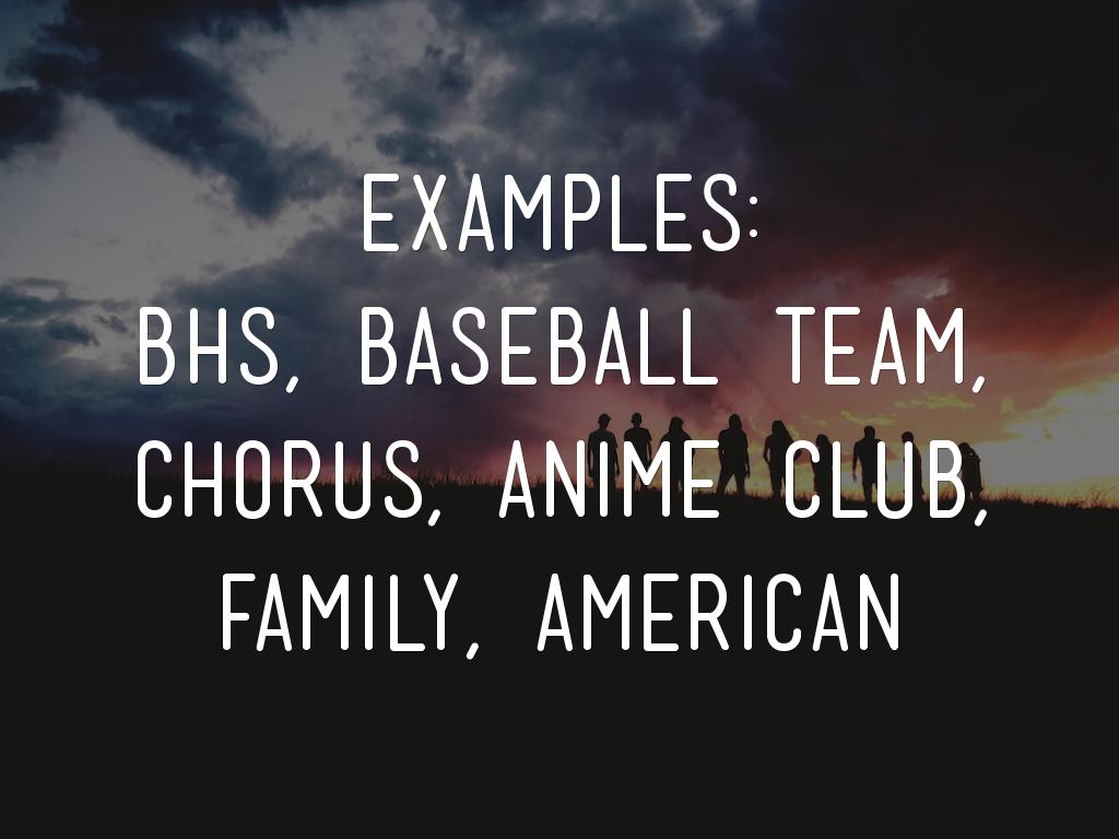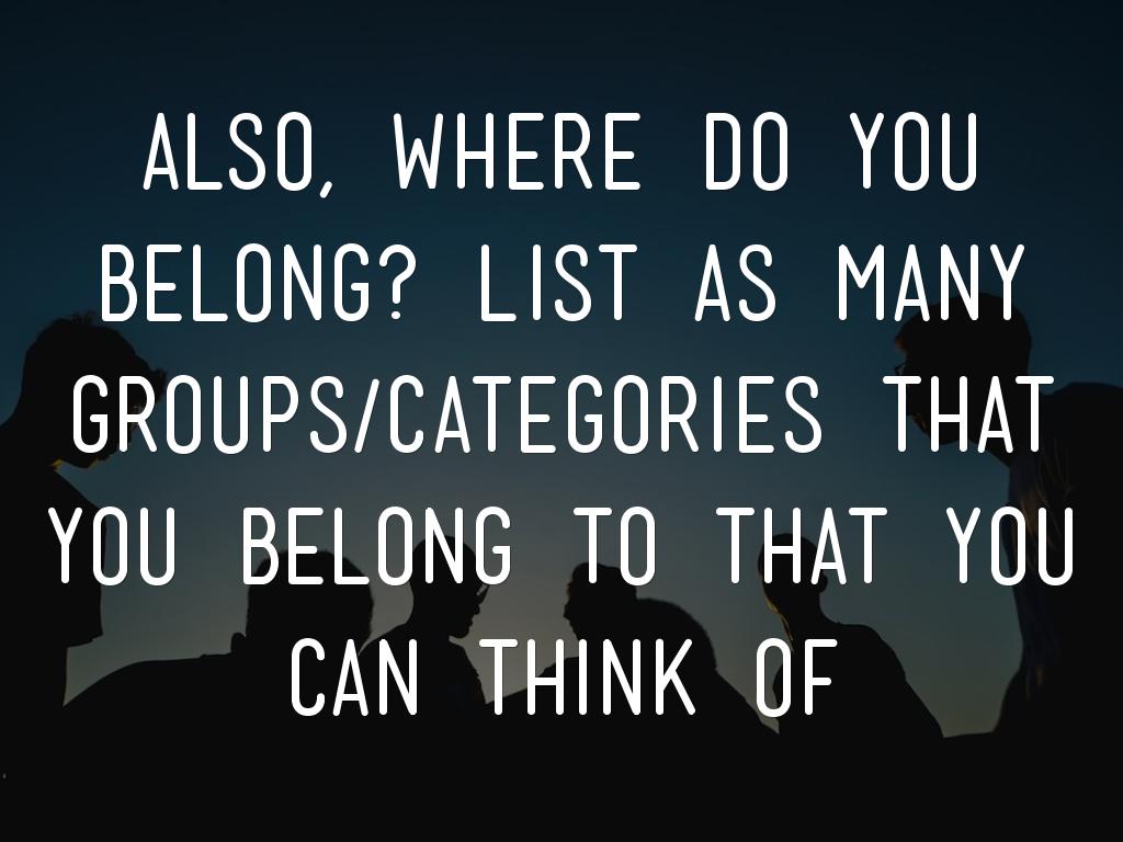 Also, where do you belong? List as many groups/categories that you belong to that you Can think of