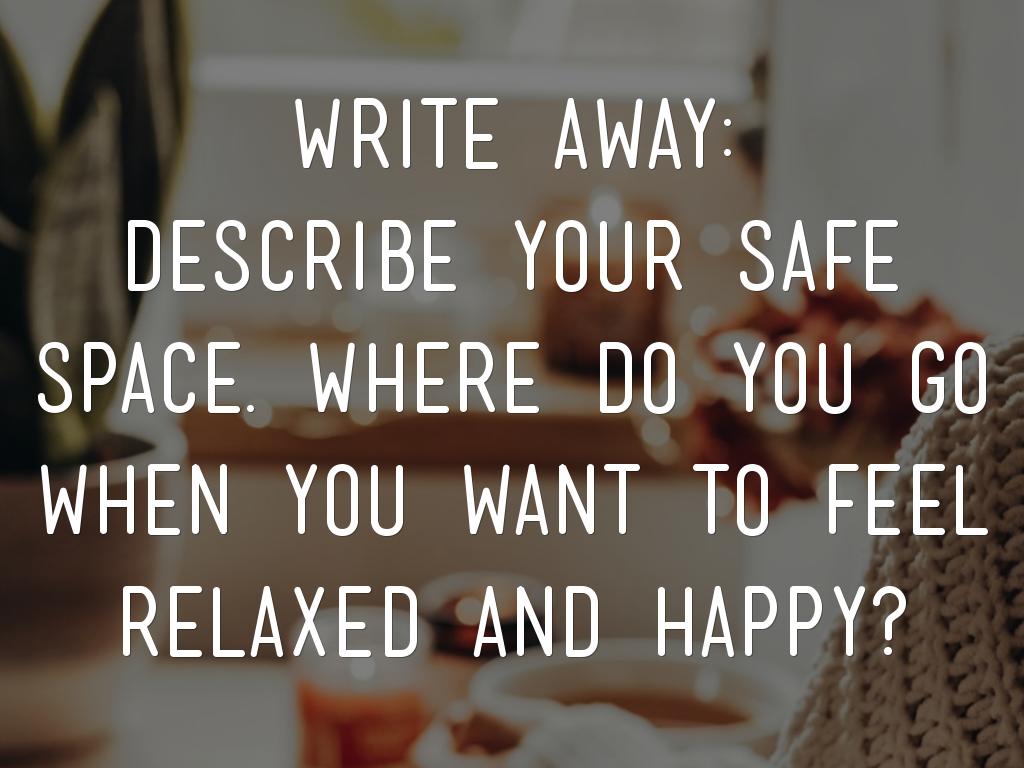 Describe your safe space. Where do you go when you want to feel relaxed and happy?
