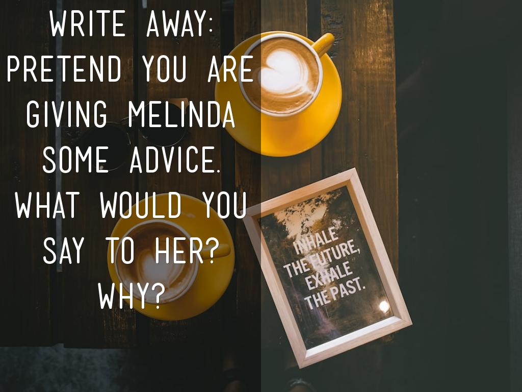 Pretend you are giving Melinda some advice. What would you say to her? Why?