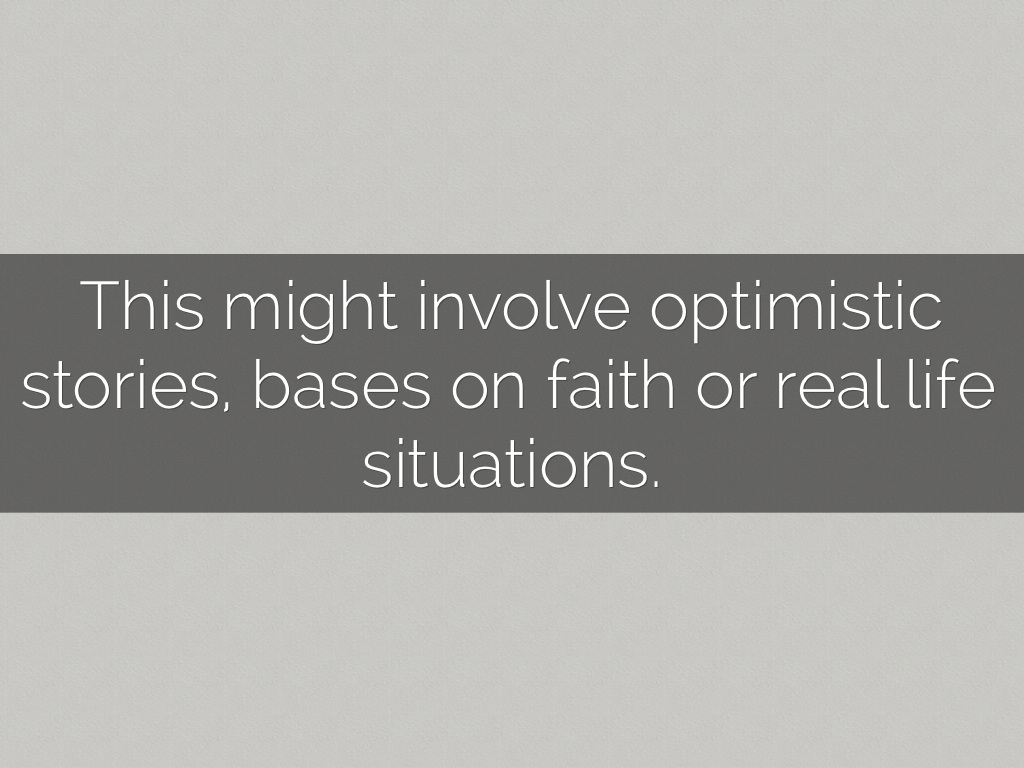 This might involve optimistic stories, bases on faith or real life situations.