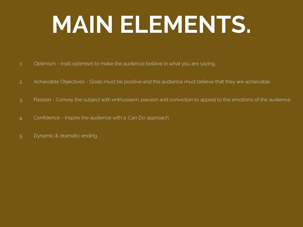 Optimism - Instil optimism to make the audience believe in what you are saying.