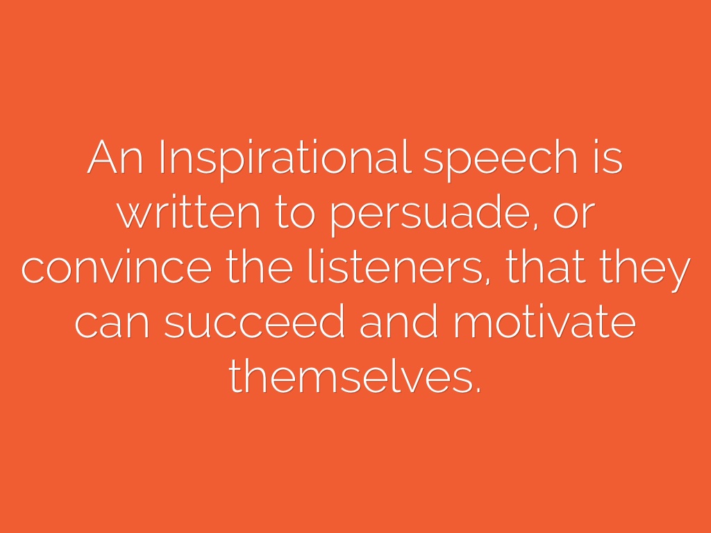An Inspirational speech is written to persuade, or convince the listeners, that they can succeed and motivate themselves.