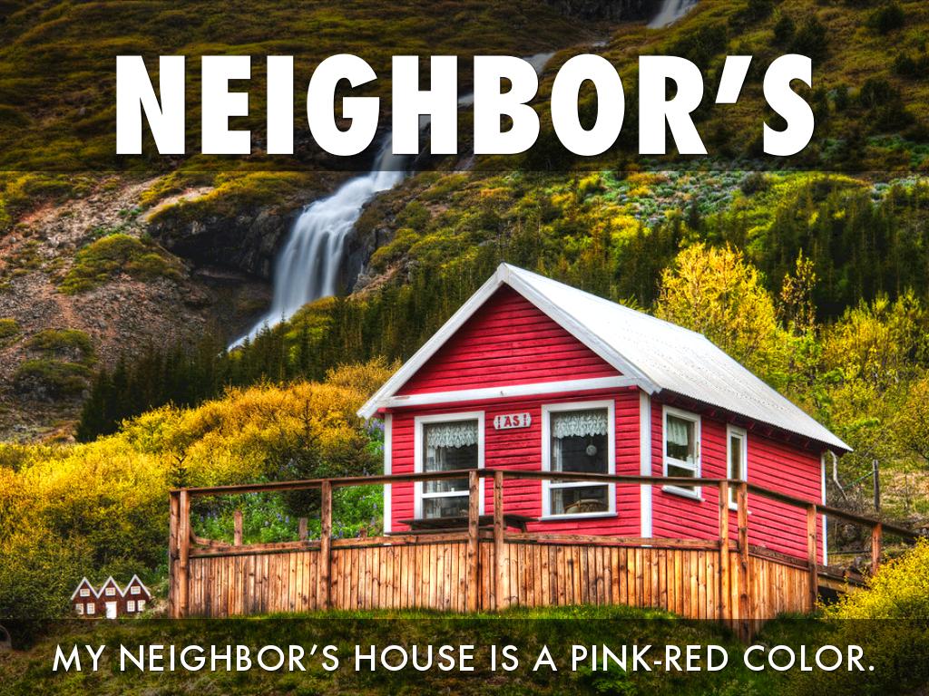 MY NEIGHBOR’S HOUSE IS A PINK-RED COLOR.