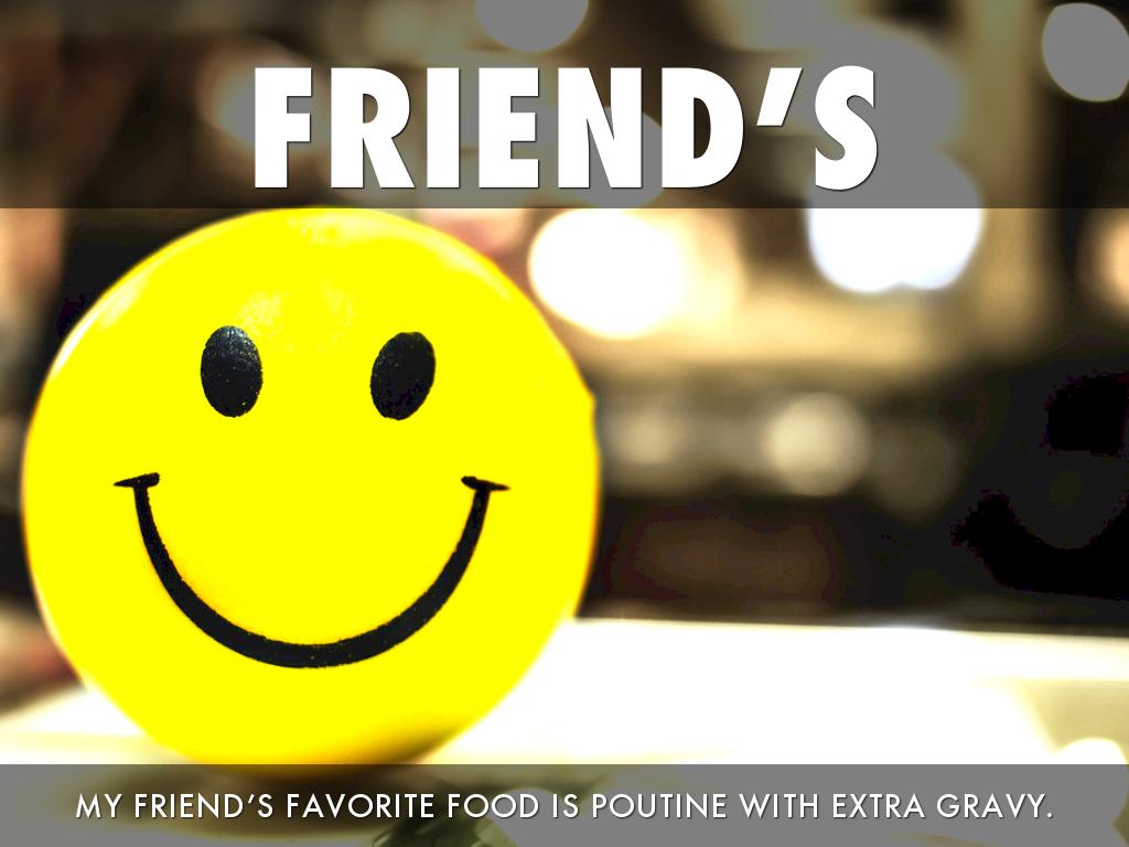 MY FRIEND’S FAVORITE FOOD IS POUTINE WITH EXTRA GRAVY.
