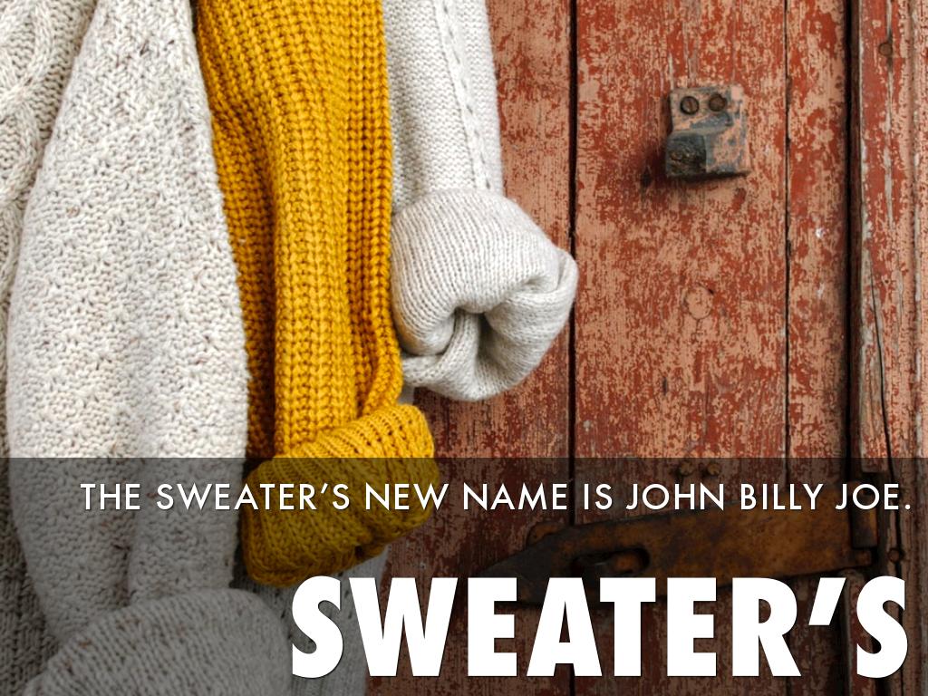 THE SWEATER’S NEW NAME IS JOHN BILLY JOE.