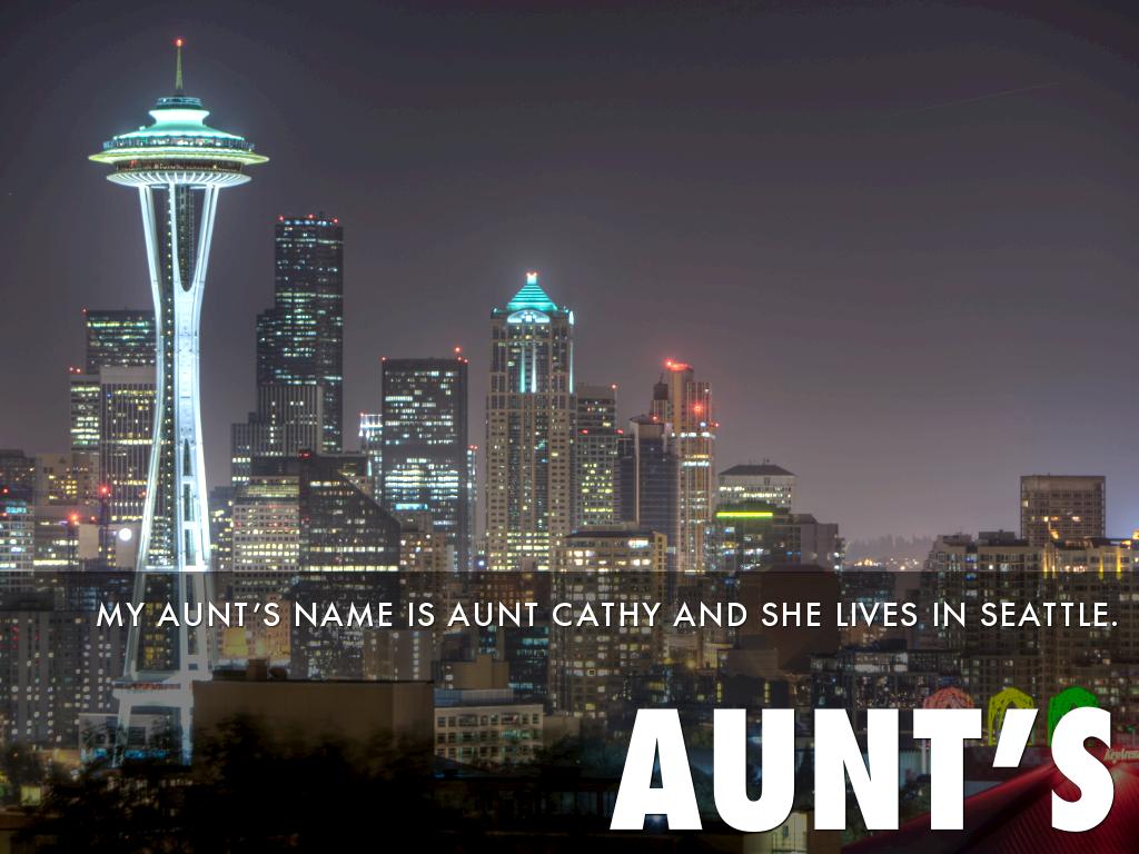 MY AUNT’S NAME IS AUNT CATHY AND SHE LIVES IN SEATTLE.