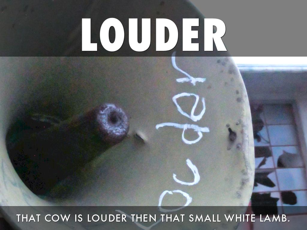 THAT COW IS LOUDER THEN THAT SMALL WHITE LAMB.
