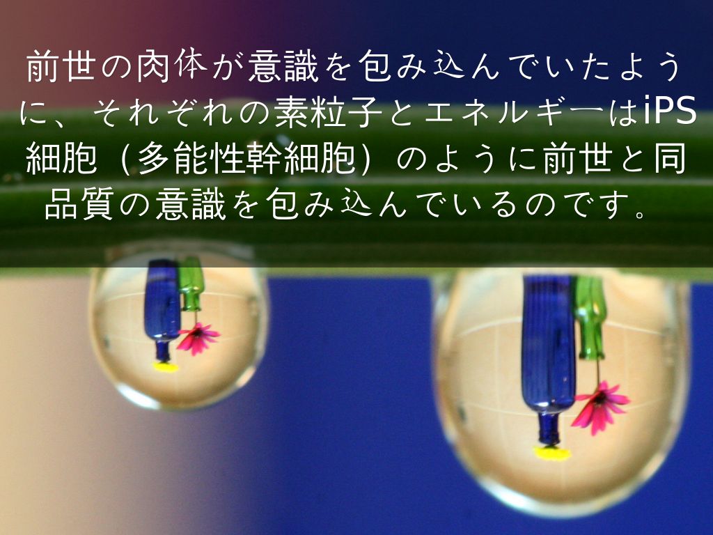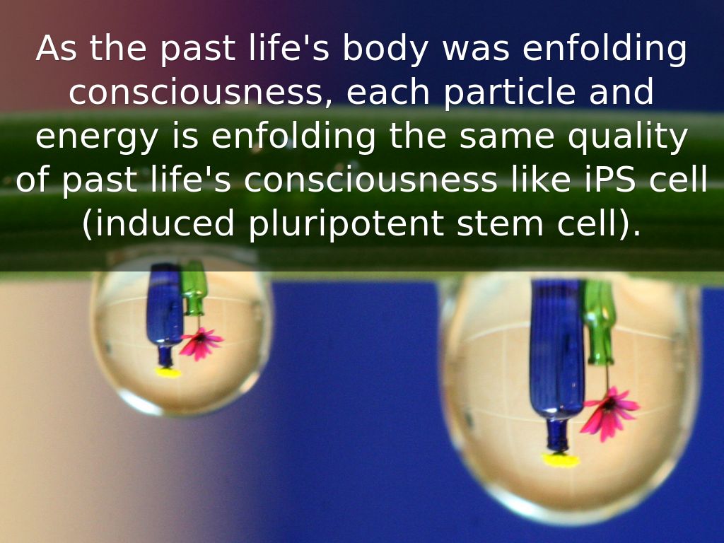As the past life's body was enfolding consciousness, each particle and energy is enfolding the same quality of past life's consciousness like iPS cell (induced pluripotent stem cell).