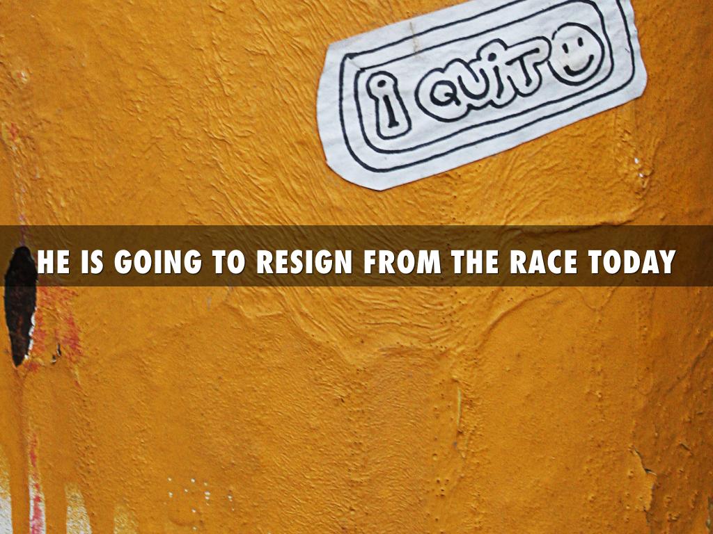 HE IS GOING TO RESIGN FROM THE RACE TODAY