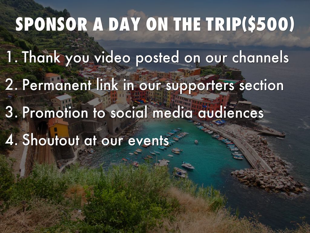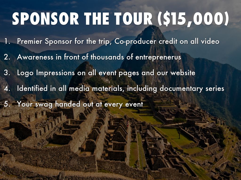 • Premier Sponsor for the trip, Co-producer credit on all video