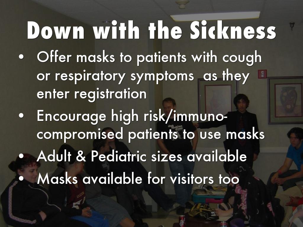 Offer masks to patients with cough or respiratory symptoms as they enter registration