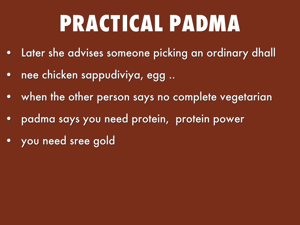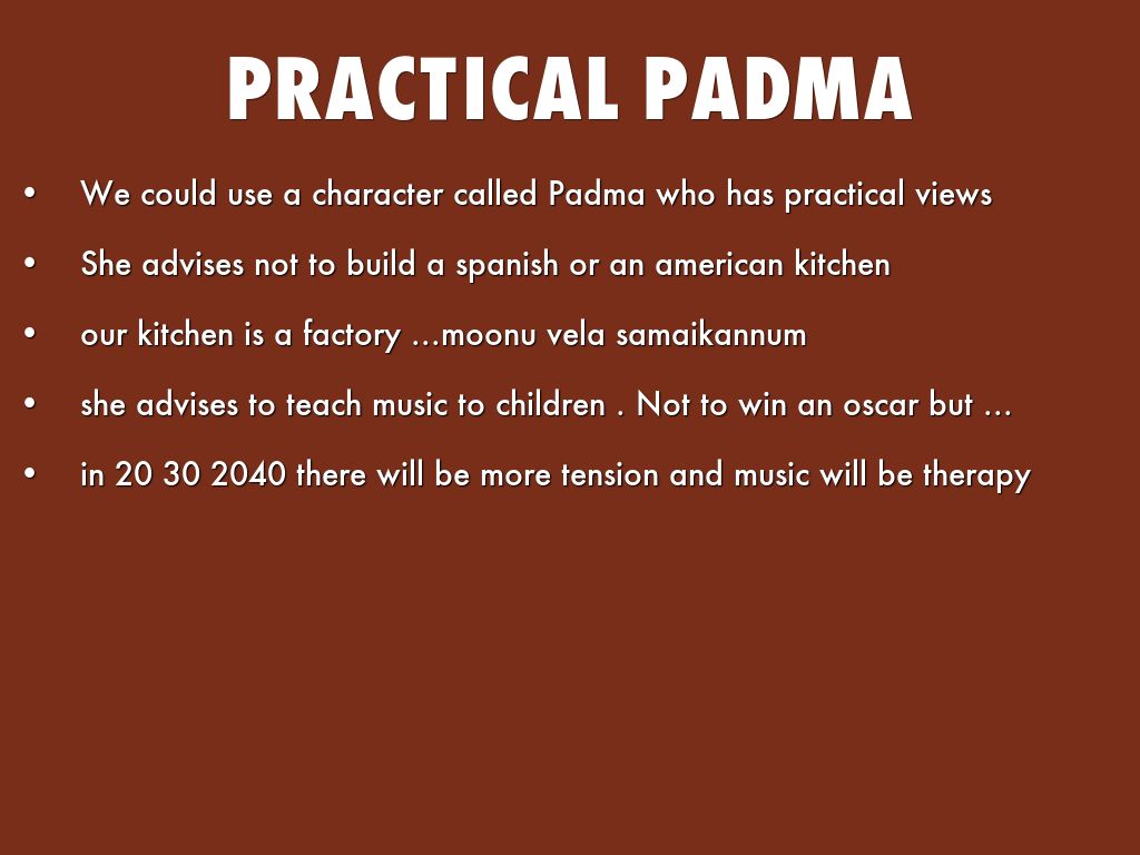 We could use a character called Padma who has practical views