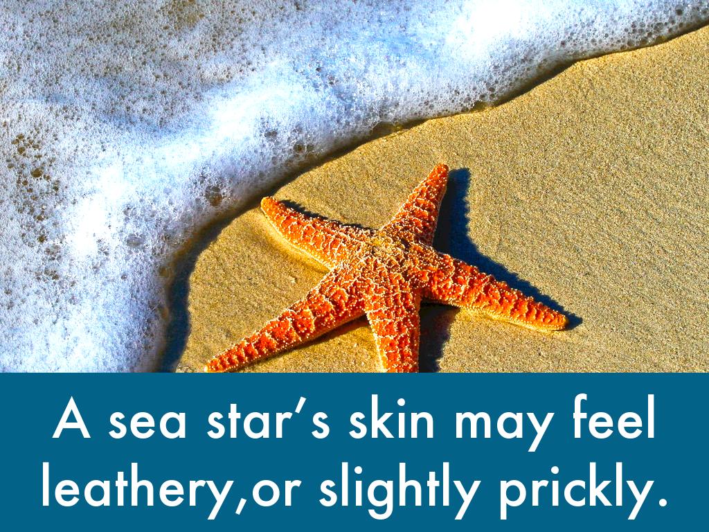 A sea star’s skin may feel leathery,or slightly prickly.