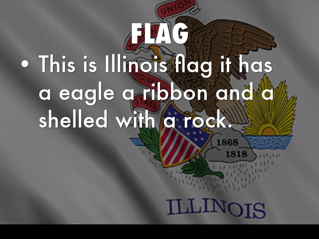 • This is Illinois flag it has a eagle a ribbon and a shelled with a rock.