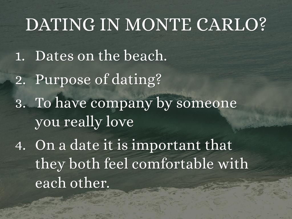 TYPICAL DATING -going out of country. U.S VS MONTE CARLO-not everywhere on the U.S has a beach close by to go on dates. MONTE CARLO DATING-Male has to drive the boat if its a boating date.
