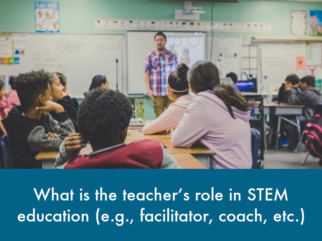 What is the teacher’s role in STEM education (e.g., facilitator, coach, etc.)