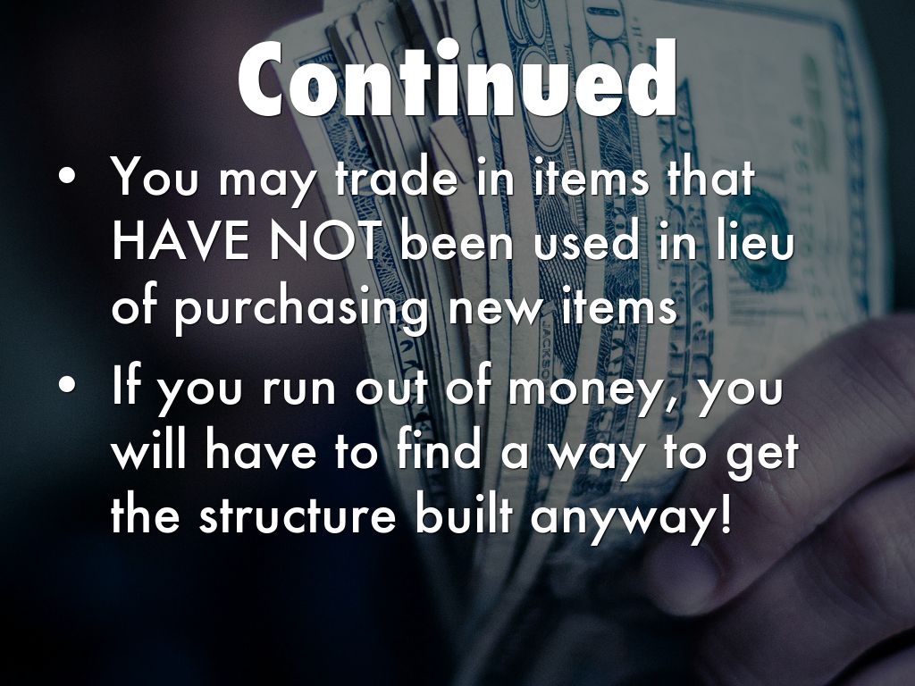 • If you run out of money, you will have to find a way to get the structure built anyway!