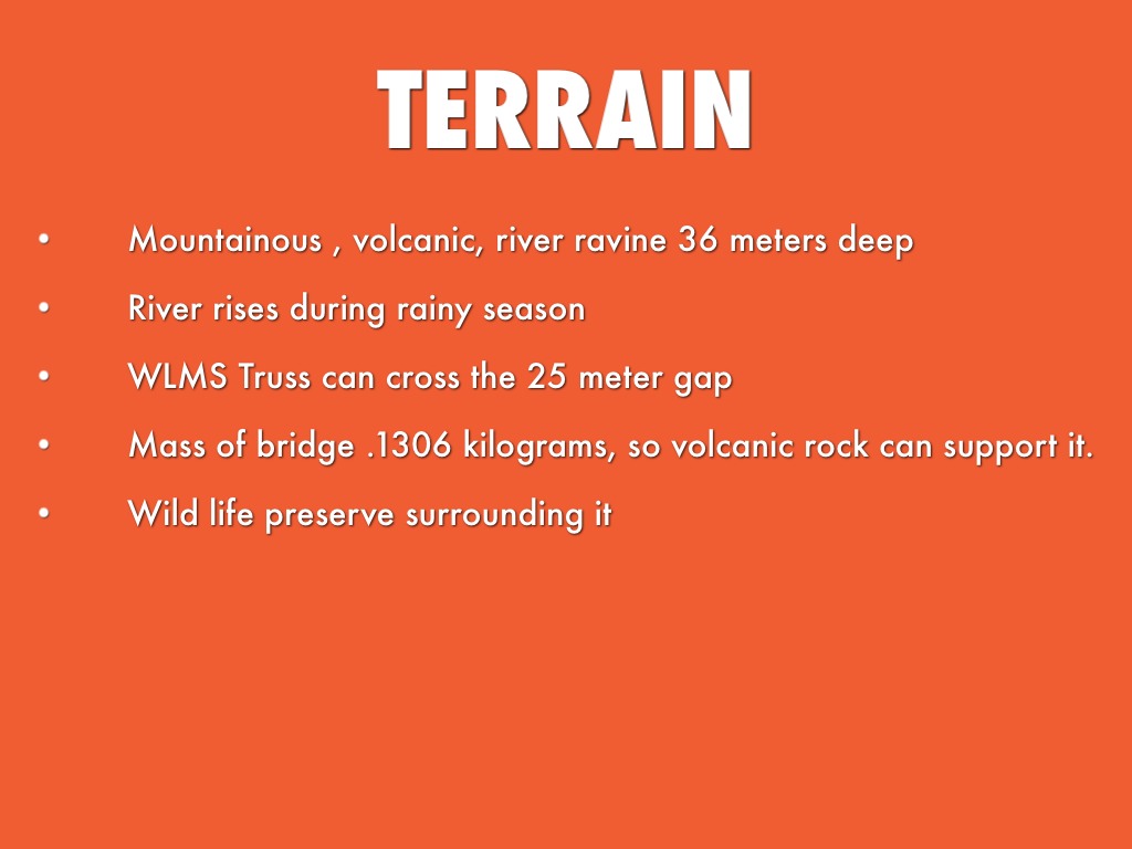 Mass of bridge .1306 kilograms, so volcanic rock can support it.