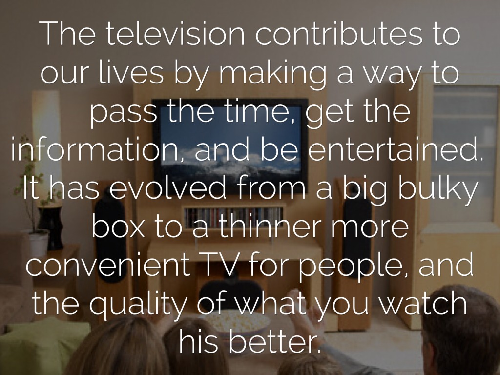The television contributes to our lives by making a way to pass the time, get the information, and be entertained. It has evolved from a big bulky box to a thinner more convenient TV for people, and the quality of what you watch his better.