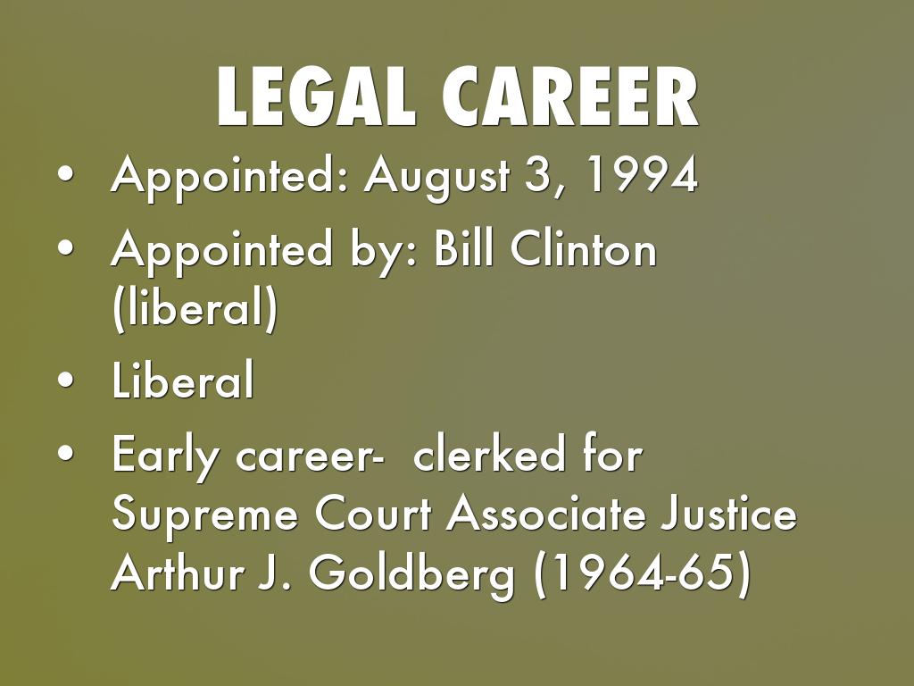 Early career- clerked for Supreme Court Associate Justice Arthur J. Goldberg (1964-65)