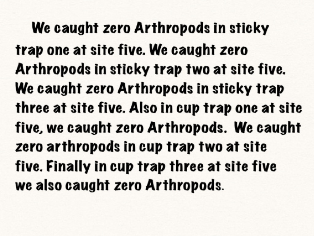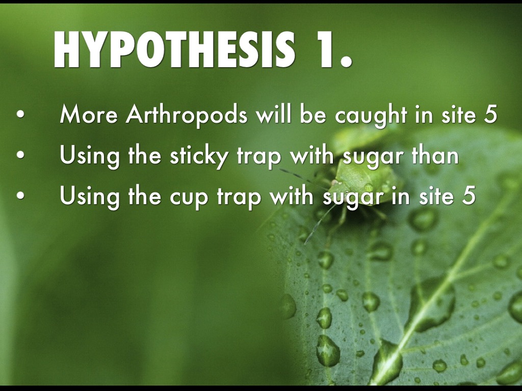 More Arthropods will be caught in site 5 using the sticky trap with sugar than using the cup trap with sugar in site 5.