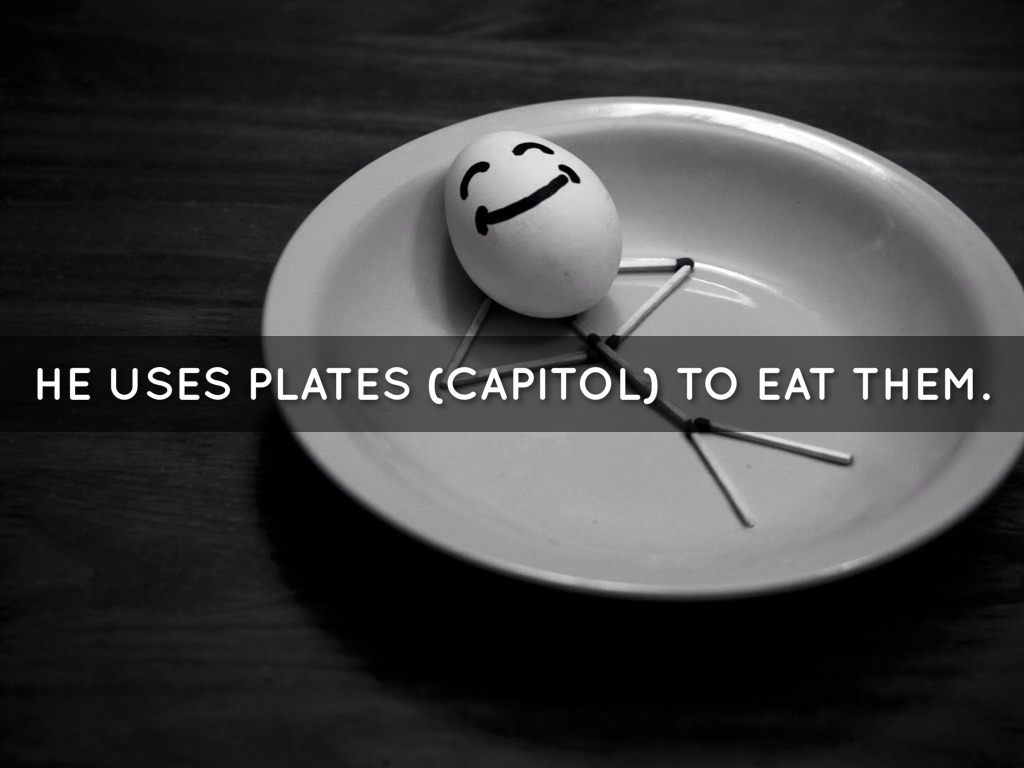 HE USES PLATES (CAPITOL) TO EAT THEM.