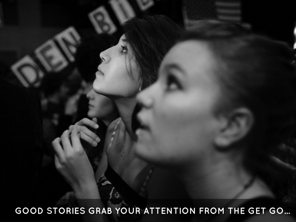 GOOD STORIES GRAB YOUR ATTENTION FROM THE GET GO...