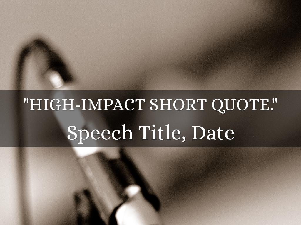 For short quotes, the standard two-line format works perfectly. You can either stretch the quote across the two lines, or use the first line for the quote and the second line for the speech title or the date.