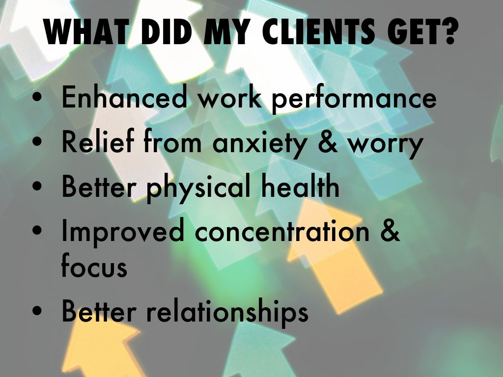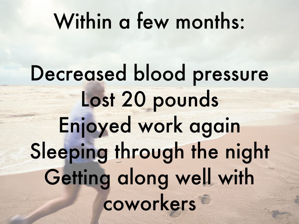 Started exercising & lost 35 pounds Got off his blood pressure medication Slept better & had more energy Felt at peace & anxiety free Focused on his work & finished projects easily