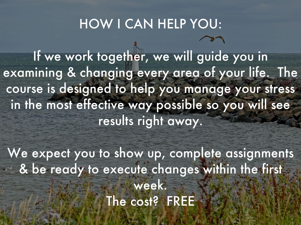 If we work together, we will guide you in examining & changing every area of your life. The course is designed to help you manage your stress in the most effective way possible so you will see results right away.