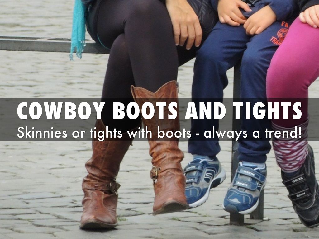 Wearing cowboy boots with tights are a bit similar to pairing it with skinny jeans. You can add a splash of color or tone done an already loud ensemble with different kind of tights.