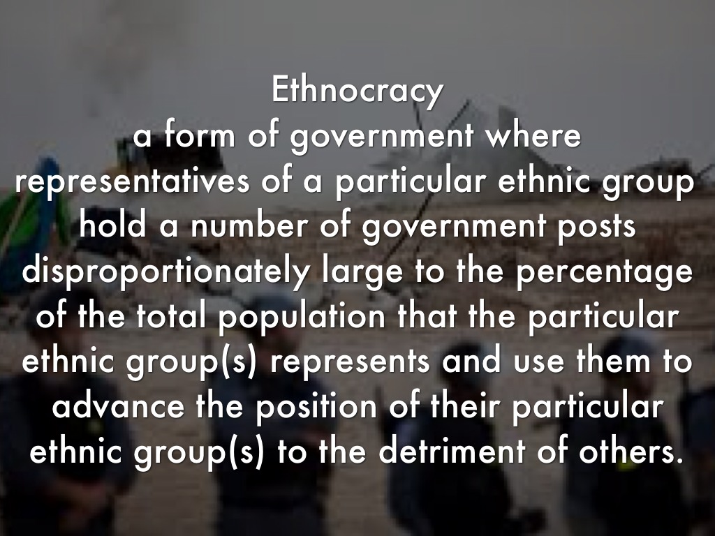 a form of government where representatives of a particular ethnic group hold a number of government posts disproportionately large to the percentage of the total population that the particular ethnic group(s) represents and use them to advance the position of their particular ethnic group(s) to the detriment of others.