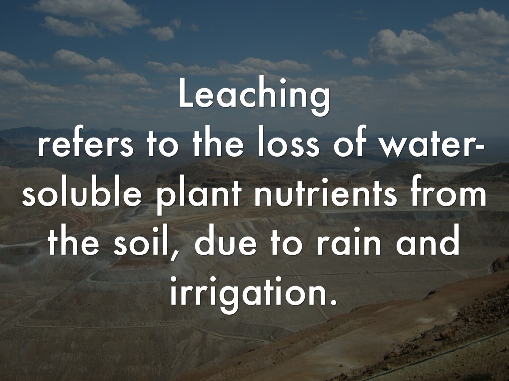 refers to the loss of water-soluble plant nutrients from the soil, due to rain and irrigation.