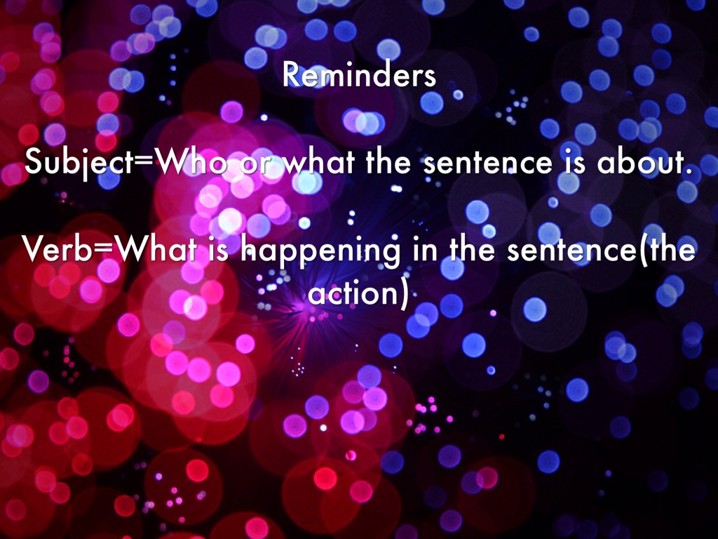 Subject=Who or what the sentence is about.