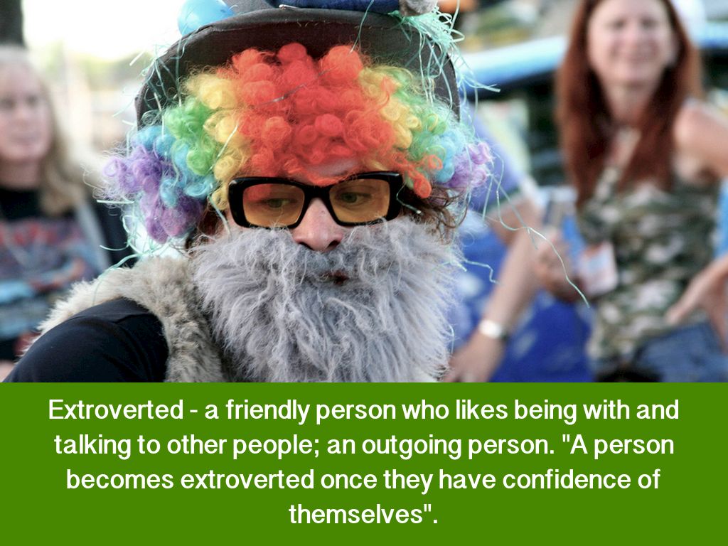 Extroverted - a friendly person who likes being with and talking to other people; an outgoing person. "A person becomes extroverted once they have confidence of themselves".