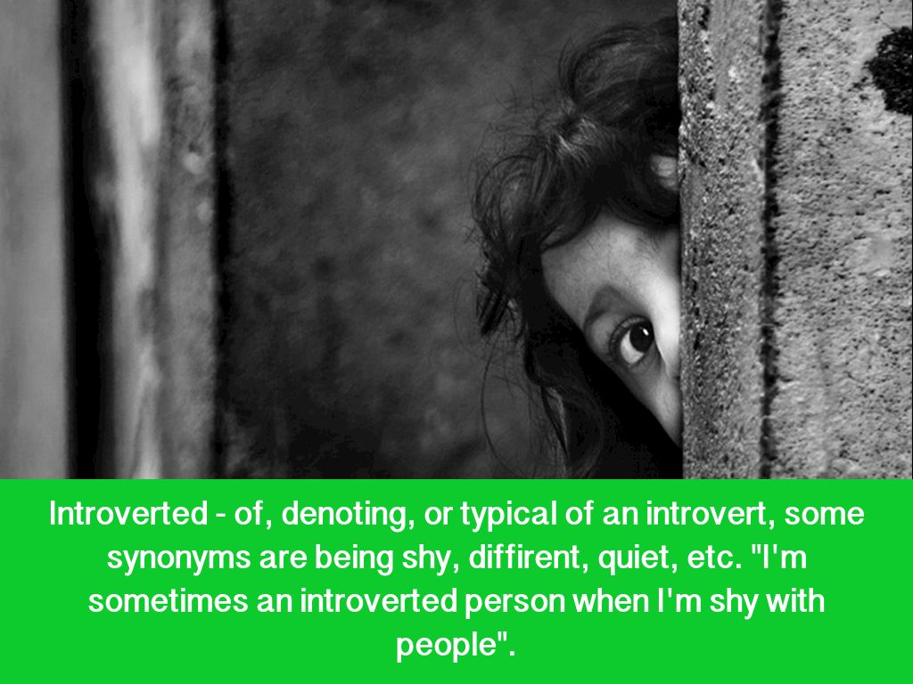 Introverted - of, denoting, or typical of an introvert, some synonyms are being shy, diffirent, quiet, etc. "I'm sometimes an introverted person when I'm shy with people".