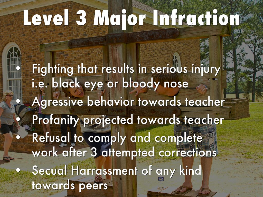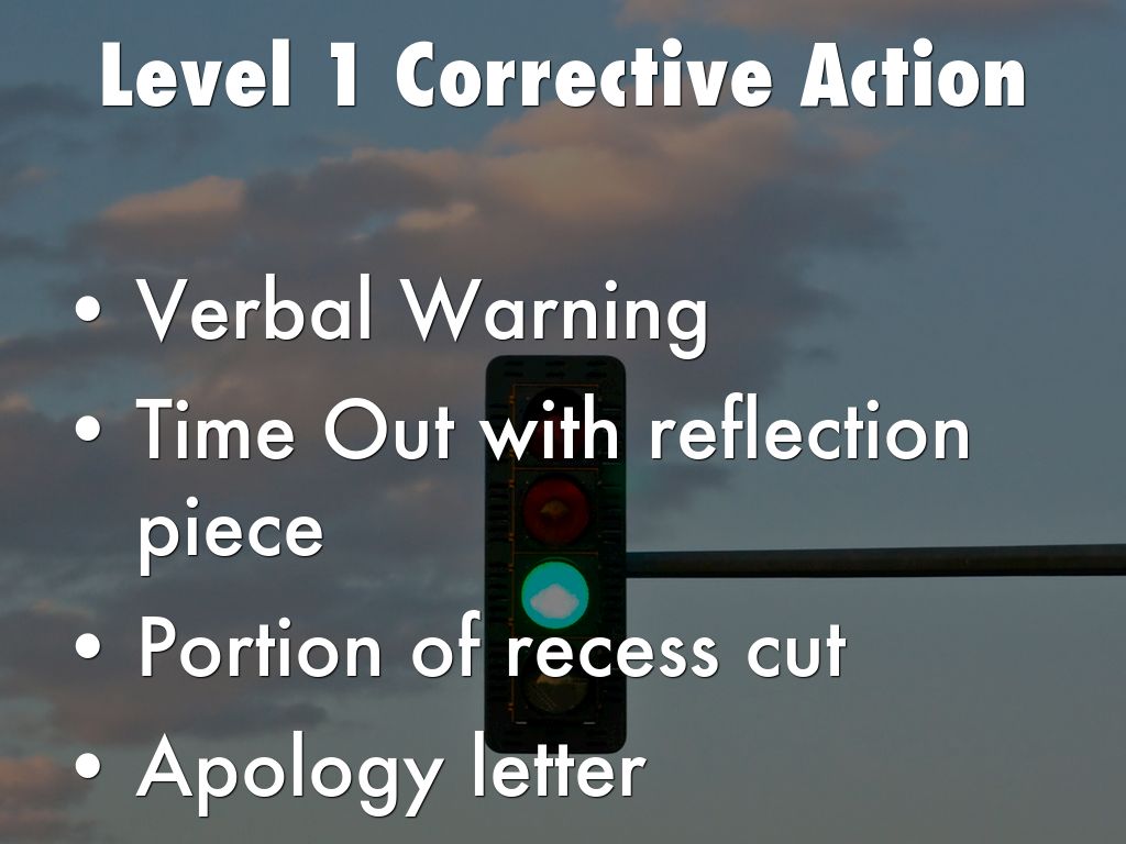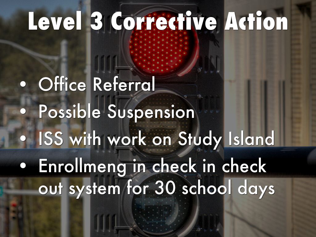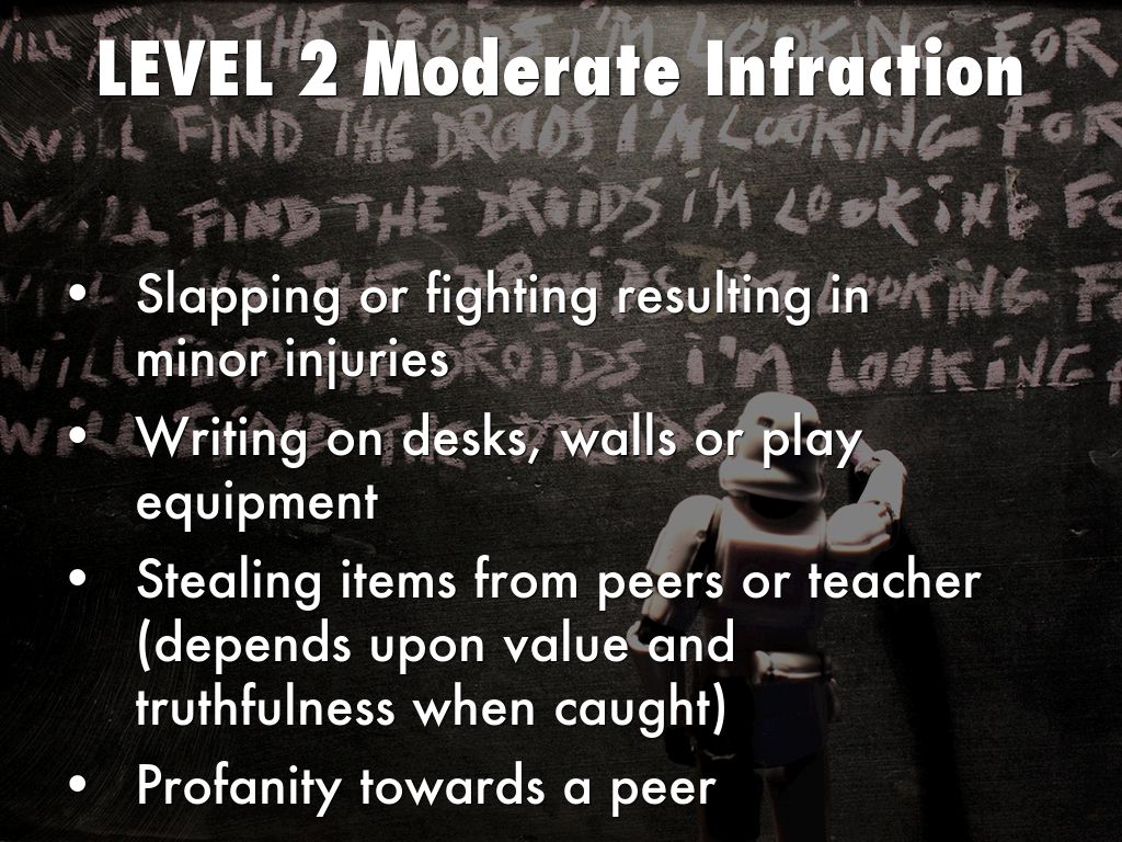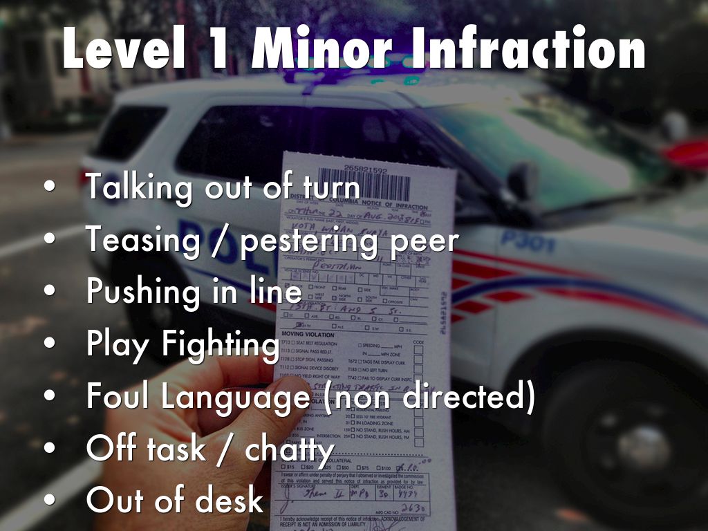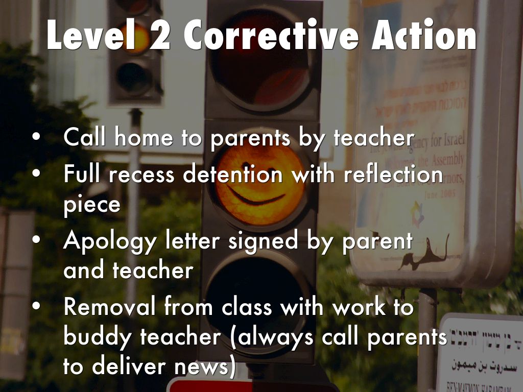 • Removal from class with work to buddy teacher (always call parents to deliver news)