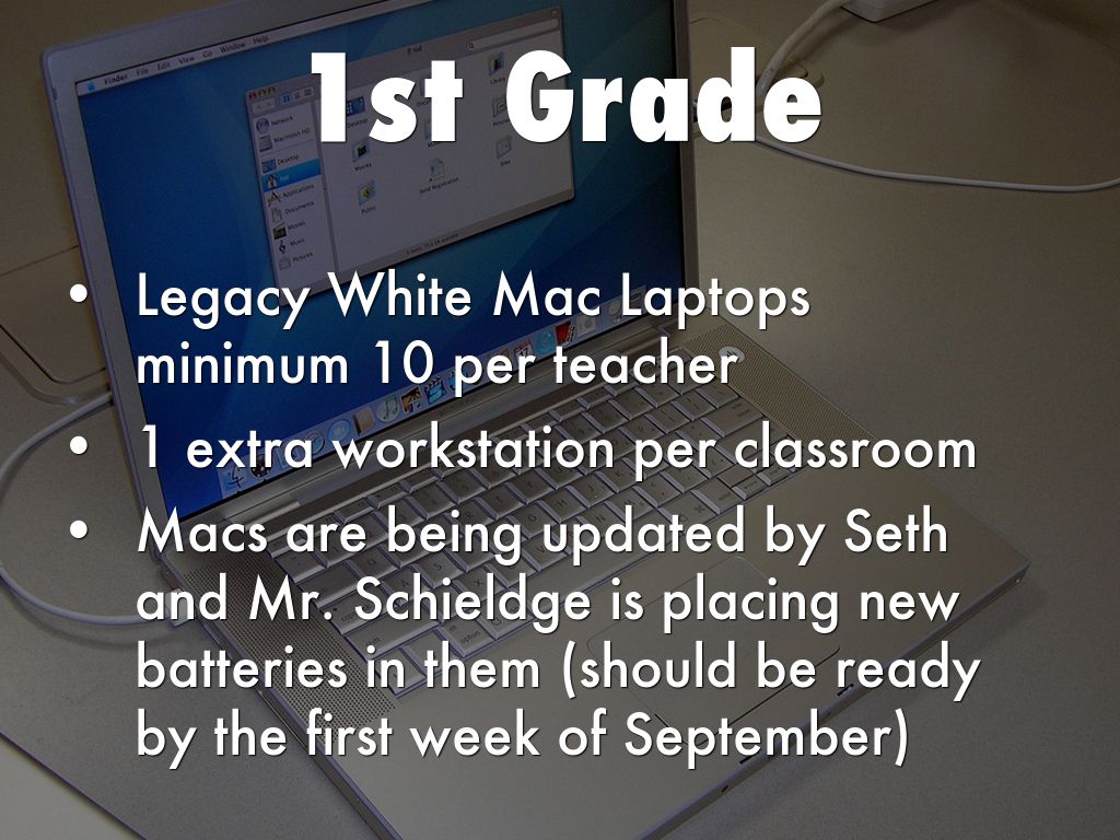 • Macs are being updated by Seth and Mr. Schieldge is placing new batteries in them (should be ready by the first week of September)